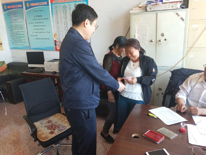 随着贫困乡亲们一个个地被喊到名字,桌上的钱慢慢地减少了,贫困乡亲们脸上的笑容逐渐增多了。