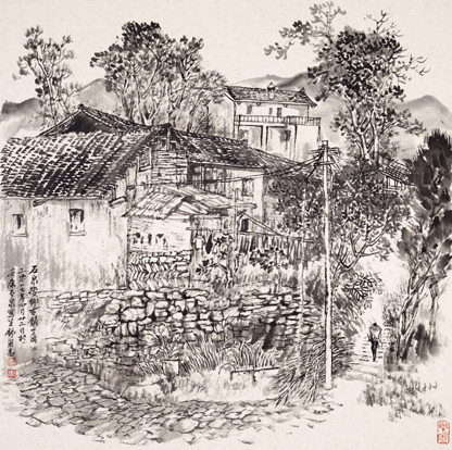中国绘画,如果离开传统土壤就会成为无本之木、无源之水,可固守传统盲目排斥外来艺术,传统绘画难保不成为枯木、死水,应该说绘画的传承性、兼容性才是把画画好可循的规律。例如国画的造型问题,眼下的有些写意水墨,人物的变形极为夸张、庸俗,再加上传统人物画观念对外来素描造型的轻视,使得当下的画风浑浊,泥沙俱下。而舒宏昌却固执地将注意力仍旧放在中西结合的造型上。他笔下的人物画形体是准确的,形态是美轮美奂的,意蕴却又超越形体和形态,让人捕捉的是画中人的心底情感。看来,他将传统和现代的“度”,掌握得恰到好处。