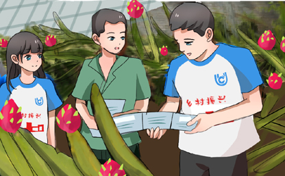 “哪里有需求,我们就到哪里去”。驻村第一书记带领实践队员们来到种植火龙果的水果大棚,种植户告诉实践队员们,现在正是火龙果植株生长旺盛的时候。“这么甜的火龙果,可以通过建行的善融商务平台进行宣传,扩大咱们的销售渠道”。