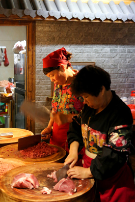 闻到肉燕飘香,令人味蕾萌动,不禁举步入内。古朴简易的店堂内,制作间与客食间并不分明,客人坐在桌旁,就可一览师傅们制作肉燕的全过程。只见师傅们目不旁视、心无旁骛,动作娴熟、十指灵活,锤、压、包、捏,令人目不遐接。一个个肉燕铺满了桌案,乍一看,状如馄饨,再细一看,却能看出小飞燕的姿态。看着可喜,我就悄悄地拍了几张。禁不住肉香的诱惑,便要了一份肉燕品尝。薄如蝉纸的肉燕皮,煮熟后,却是晶莹剔透,配上绿色的香菜,格外清香,几口下肚,味韧而绵,食香盈颊。