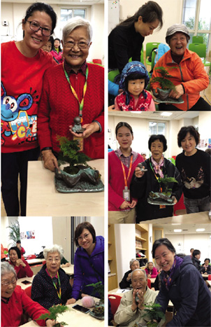 讲座结束后,活动继续升温,进入主题。“花仙子”们拿出精心准备的文竹盆景,为在场的社区老人们一一送上,并为他们讲解养护方法。面对这份意外的礼物,老人们喜笑颜开,喜爱有加。