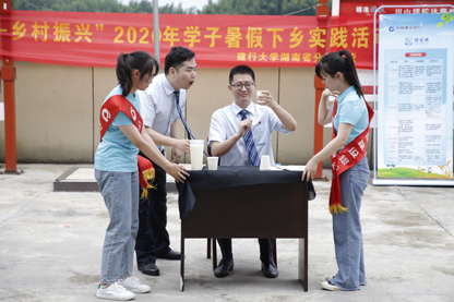 活动首先召开了“金智惠民—助力脱贫攻坚”座谈会,会上暑期学子与村贫困学生进行了结对帮扶活动,并为村上学生捐赠书包、文具、书籍等礼物。