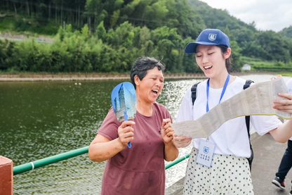 建行大学宁波市分校组织学子走进大堰镇箭岭村普及金融知识,用乡音乡情向村民传递新知。戴师竹/摄