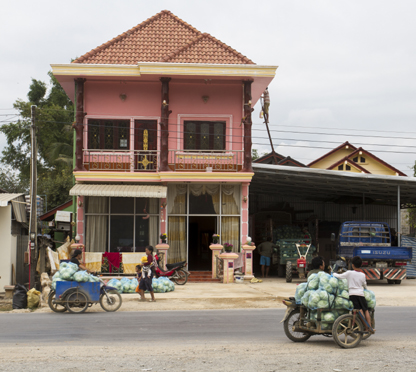 从首都万象开往万荣市的公路两旁,是连绵不断的农田和一栋栋两三层楼的小砖房